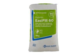 Gyproc EasiFill 60 combines setting and air-drying, meaning you can use it for both bulk filling and finishing. This way, there's no need for more than one jointing compound.With a working time of just 60 minutes, the filler is both fast and versatile. You can even apply a second coat in 140 minutes, letting you finish quickly and get more done.This gypsum based filler compound gives you high coverage so you can do more with less. It also offers low shrinkage, meaning you can easily sand it to a perfect finish.